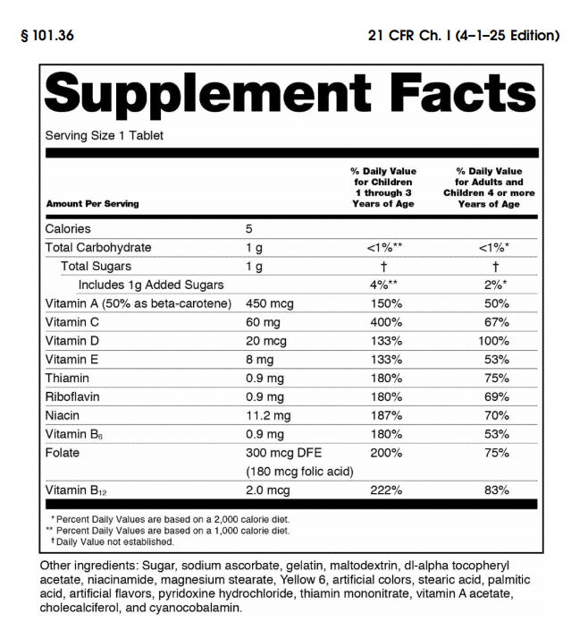 21 CFR §101.36 – Nutrition labeling of dietary supplements